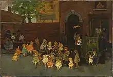 Pendant cette période du Gilded Age, allant de la décennie 1870 jusqu'au début du XXe siècle, l'art n'échappe pas aux mutations que connaît le pays. Les artistes américains les plus connus de cette époque, tels Eastman Johnson, Winslow Homer, Thomas Eakins, John Singer Sargent, Mary Cassatt et Maurice Prendergast, sont malgré tout fortement influencés par la peinture européenne et particulièrement française. De nombreux jeunes artistes vont faire leurs études d'art en Europe, et Paris reste le point d'attraction central du marché de l'art, ou du moins l'endroit où les frontières de genre bougent[4]. L'un des artistes américains les plus représentatifs de cette époque est James Abbott McNeill Whistler, qui, vivant entre Londres, Paris et New York, sert de lien entre les différents courants et tendances.