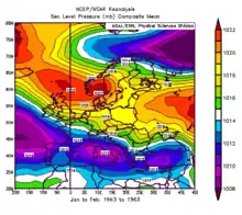 - (en) E. Kalnay et al., « The NCEP/NCAR 40-Year Reanalysis Project », Bull. Amer. Meteor. Soc., American Meteorological Society, vol. 77, no 3, , p. 437–471 (DOI 10.1175/1520-0477(1996)077%3C0437:TNYRP%3E2.0.CO;2 10.1175/1520-0477(1996)077%3C0437:TNYRP%3E2.0.CO;2, lire en ligne [PDF])