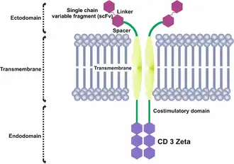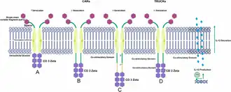 Les CAR font partie d'une série d'avancées prometteuses dans la lutte contre le cancer grâce au développement de thérapies adoptives de transfert de cellules[1],[2]. Des lymphocytes du patient sont prélevés puis génétiquement modifiés pour les doter d'un récepteur CAR spécifique d'un antigène exprimé par les cellules tumorales du patient. Les cellules immunitaires, réintroduites dans le patient, peuvent alors reconnaître et tuer les cellules cancéreuses.