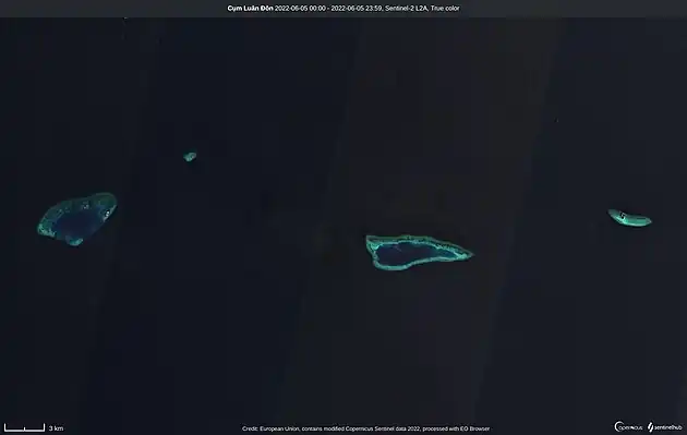 | Bai Chau Vien | 8.883333 | 112.851389 | 8° 53′ 00″ N, 112° 51′ 05″ E | Cuarteron Reef |
