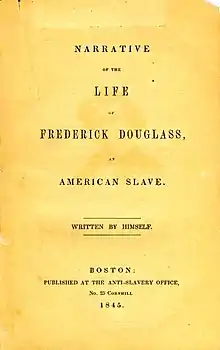 Récit de la vie de Frederick Douglass, un esclave américain (en anglais, Narrative of the Life of Frederick Douglass, an American Slave) est un mémoire et un traité de 1845 sur l'abolition écrits par l'orateur afro-américain et ancien esclave Frederick Douglass, pendant son séjour à Lynn, Massachusetts[1]. Il est généralement considéré comme le plus célèbre d'un certain nombre de récits écrits par d'anciens esclaves au cours de la même période. Dans le détail factuel, le texte décrit les événements de sa vie et est considéré comme l'une des œuvres les plus influentes de la littérature pour alimenter le mouvement abolitionniste du début du XIXe siècle aux États-Unis.
