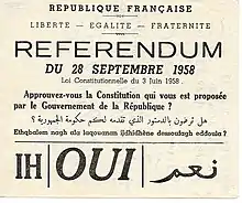 | Référendum constitutionnel français du 28 septembre 1958 | ||||||||||||||