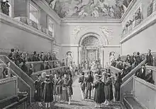 Ces derniers, parmi lesquels d’anciens députés aux Cortès du Triennat libéral qui avaient passé des années en exil, utilisèrent le droit de pétition reconnu dans le Statut royal pour exiger du gouvernement, entre autres mesures, la reconnaissance des « droits politiques des Espagnols » sur lesquels s’appuie « tout gouvernement représentatif ». Le gouvernement répondit en dissolvant les Cortès de façon anticipée le 29 mai 1835, après une session parlementaire tourmentée à l’issue de laquelle Martínez de la Rosa « fut victime de plusieurs tentatives d’agression de la part de groupes exaltés »[37]. Ce dernier démissionna quelques jours plus tard[38].