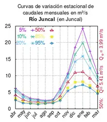Le Río Juncal a une pointe marquée de débit en décembre, janvier et février – l'été de l'hémisphère sud.