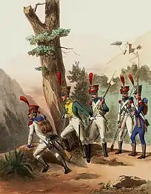 Le régiment portait l'uniforme bleu de l'infanterie légère avec des épaulettes rouges bordées d'un galon argenté[2].