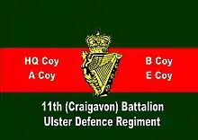Les sept premiers bataillons levés font de l'UDR le plus grand régiment d'infanterie de l'armée britannique de l'époque[44]. Deux ans plus tard, quatre autres bataillons ont été ajoutés, portant le total à onze - 8e (comté de Tyrone) ; 9e (Comté d'Antrim) ; 10e (Ville de Belfast) et 11e (Craigavon).