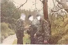 Les sous-unités du quartier général maintenaient le contact avec leurs propres patrouilles et le QG par radio. Dans de nombreux cas, les radios étaient utilisées par des Greenfinches (femmes soldats)[72], dont les maris ou les fils et/ou les filles faisaient partie d'une des patrouilles actives, ce qui donnait lieu à des moments de tension lorsque des unités mobiles ou des patrouilles à pied étaient attaquées et soumettaient un "rapport de contact" par radio.