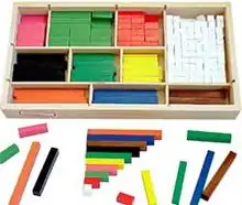 Les réglettes Cuisenaire sont un ensemble de réglettes colorées, utilisées pour l'apprentissage du calcul par les jeunes enfants[1]. Il s'agit d'une méthode de calcul très moderne qui s'inscrit totalement dans l'approche actuelle de l'enseignement des mathématiques à l'école fondamentale[2]. Elle existe pourtant depuis 1952.