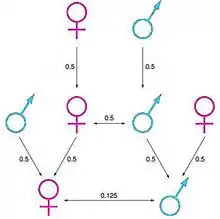Exemple : Chez de nombreux rongeurs Arvicolinae, la densité de la population suit un cycle de 3-5 ans et cette dynamique a été partiellement expliquée par la préférence des individus à se regrouper entre membres apparentés. À la suite de l’augmentation de la densité de la population et les limites fixées par les territoires, un phénomène de dispersion va avoir lieu sur de grandes distances. Les nouveaux territoires avoisinants, composés d’individus plus distants génétiquement, vont voir leur densité de population diminuer à la suite de l’augmentation des agressions et de la suppression de la reproduction[15],[17].