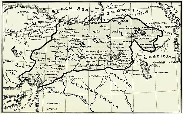 Au cours de l'année 1919, deux commissions d'enquête alliées influenceront le destin de l'Arménie. Au printemps 1919, le Conseil des Quatre (Lloyd George, Clemenceau, Wilson et Orlando) décide d'envoyer au Moyen-Orient une commission afin de se forger une opinion sur la situation dans la région. La commission King-Crane (du nom des deux Américains qui la dirigent), qui ne s'occupe pas spécifiquement de l'Arménie et ne s'y rendra d'ailleurs jamais, rend néanmoins des conclusions favorables à la création d'un État arménien comprenant les vilayets orientaux de l'Empire ottoman mais pas la Cilicie. La Commission Harbord (en)[3] (du nom de son président) est, quant à elle, envoyée au Proche-Orient par le président Wilson au cours de l'été 1919 pour étudier la faisabilité d'un mandat américain en Turquie et en Arménie. Dans ses conclusions la commission se borne à aligner les pour et les contre. Parmi ceux-ci elle relève la charge financière que le mandat représenterait pour les États-Unis. Le rapport de cette commission jouera indiscutablement un rôle négatif lorsque le Sénat américain sera amené à se prononcer sur la question du mandat.
