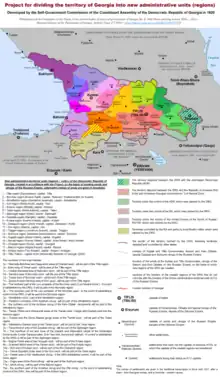 En République démocratique de Géorgie, conformément au projet de division du territoire de la Géorgie en nouvelles unités administratives (régions), élaboré par la Commission d'autonomie gouvernementale de l'Assemblée constituante de la République démocratique de Géorgie en 1920 (Publication du Comité de l'Union des organes élus de l'autonomie locale de Géorgie n° 2, 1920 (Imprimerie d'État), Tiflis. - 103 p. ; Bibliothèque nationale du Parlement de Géorgie, Fonds d'archives, F 7.876/4 - https://dspace.nplg.gov.ge/handle/1234/277728) la division en gouvernorats et oblasts a été supprimée, les uezds et okrugs ont été préservés, renommés régions. Les noms des régions étaient principalement proposés par les noms de leurs centres administratifs. Des changements mineurs ont été apportés à leurs frontières et plusieurs anciens uezds et okrugs ont été unifiés : les okrugs de Batoumi et d'Artvin - dans la région de Batoumi, les uezds d'Akhaltsikhé et d'Akhaltsikhé - dans la région d'Akhaltsikhé, les uezds de Dusheti et Tianet dans la région d'Ananuri. En outre, trois entités autonomes ont été créées : l'autonomie abkhaze (région de Soukhoumi), l'autonomie de la Géorgie musulmane (région de Batoumi) et la région de Zagatala. Une autonomie locale à deux niveaux a été introduite : 18 régions et l'équivalent des régions, la capitale de la Géorgie - Tiflis (Tbilissi) au niveau régional et 356 villes et communautés au niveau local. La partie sud du district d'Ardahan et du district d'Olta - si la République démocratique de Géorgie en prend le contrôle, feront partie de la région d'Artaani créée.