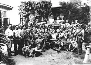 L'existence d'un courant germanophile est ancienne en Géorgie. Plusieurs facteurs y ont contribué à des degrés divers, la présence de colonies allemandes installées sur le territoire géorgien aux siècles précédents, le savoir-faire scientifique et technique allemand transmis par le canal russe, l'idéologie sociale-démocrate allemande largement diffusée dans les congrès socialistes internationaux, le partage d'un ennemi commun, l'Empire russe,... Les perspectives de paix séparée entre la Russie soviétique de Lénine et l'Empire allemand de Guillaume II déclenchent dès le début 1918 la désorganisation de l'armée russe sur le front d'Asie mineure : l'Empire ottoman y voit une occasion de reconquête des territoires perdus et même au-delà. Pour les dirigeants politiques géorgiens, tant en responsabilité au sein de la république démographique fédérative de Transcaucasie comme Akaki Tchenkéli, qu'au sein du Conseil national géorgien comme Noé Jordania, l'Empire allemand apparait comme le seul rempart à l'avancée militaire ottomane. Dès les premiers jours de , une cellule technique allemande s'installe clandestinement à l'ambassade de Suède à Tiflis : elle permet de communiquer avec Berlin et de faire avancer les négociations avec les candidats au pouvoir en Géorgie[15]. Une convention est signée le avec l'Empire allemand, reconnaissant la création de cette dernière, accordant des avantages économiques à Berlin et demandant aux troupes allemandes de contenir l'avancée ottomane sur le territoire géorgien (Général Friedrich Kress von Kressenstein)[16]. Le , un corps expéditionnaire allemand de 3 000 hommes débarque à Poti et se déploie le long de la partie géorgienne de la ligne de chemin de fer reliant Batoumi à Bakou, évitant ainsi toute incursion ottomane[17]. À l'approche de l'armistice de la Première Guerre mondiale, l'Empire allemand évacue ses troupes du territoire géorgien, laissant la place à un contingent britannique.
