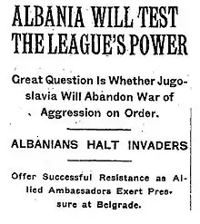 La Grande-Bretagne, qui avait reconnu le gouvernement albanais en novembre 1921, a rejeté la position de la Yougoslavie en envoyant, par l'intermédiaire de son premier ministre Lloyd George, de multiples protestations diplomatiques enflammées à Belgrade, exigeant son retrait des zones contestées[6],[8]. L'intervention de la Grande-Bretagne a été importante car le soutien yougoslave à Gjoni a pris fin par la suite[9]. Le gouvernement britannique a conseillé à la Société des Nations de prendre des mesures contre la Yougoslavie sur la base de l'article 16 du Pacte de la Société et la Conférence des ambassadeurs a suggéré des sanctions[6],[1]. La Société des Nations a reconnu les frontières de l'Albanie comme étant celles de 1913 avec de petits ajustements territoriaux en faveur de la Yougoslavie[6]. Ahmet Zog a été envoyé dans la région de Mirdita par le gouvernement albanais avec un contingent de troupes albanaises et de forces irrégulières qui ont vaincu le mouvement sécessionniste le 20 novembre 1921[8],[4],[2]. A son arrivée, Zog a offert des conditions clémentes de non représailles si la rébellion cessait, tandis que Gjoni s'est enfui en Yougoslavie[8],[2]. Les anciens locaux de Mirdita ont négocié avec Zog un accord avec le gouvernement central[8]. Mirdita a été placée en état de siège, Gjoni et ses partisans ont été proclamés traîtres à l'Albanie et d'autres Mirditors associés aux événements ont été punis par une cour politique du gouvernement[4]. Les arrangements précédents datant de la période ottomane qui donnaient à Mirdita une autonomie par le biais d'une règle indirecte ont été abolis[4]. Après un certain temps, Marka Gjoni a été autorisé à retourner en Albanie et à Mirdita, il a été actif dans les affaires locales pendant quelques années avant sa mort[2].