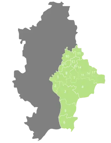 Au 23 février 2022, le territoire contrôlé par la république populaire de Donetsk est organisé en 17 divisions administratives[51] :