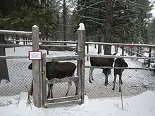 Parallèlement à ces entreprises, une ferme d'élans (лосеферма, lossiéferma) a été inaugurée en 1949 pour étudier la faisabilité de cette domestication. Six générations d'élans ont donc été élevées ici à ce jour, comprenant une trentaine d'individus par an, soit un total d'environ cinq cents individus. On a observé que le mâle demeure ensuite dans la forêt, alors qu'une femelle retourne toujours à la ferme pour mettre bas et y retourne plusieurs fois par jour pendant la période de lactation (entre trois et cinq mois) pour être traite aux mêmes heures. Entre trois et cinq cents litres chaque saison sont obtenus par femelle, ce qui est peu en comparaison avec une vache laitière. Toutefois son lait est riche en graisse (12-14 %), en vitamines et en microéléments.