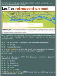 En 2004 la ville désire nommer toutes les îles de la Réserve Naturelle Volontaire: parution brochure Chelles-Contact de Juillet 2004