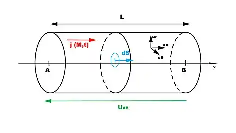 Soit un cylindre de longueur L et de surface S muni d'un repère cylindrique avec :