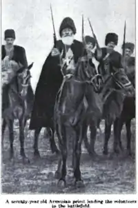 - Le 29 décembre 1914, l'armée ottomane est vaincue à la bataille de Sarikamish[11]. Les Arméniens contribuent aux côtés des forces russes à la défaite.