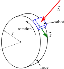 - de la circonférence extérieure de la roue pour les freins à sabot (chariots à cheval, trains) ;