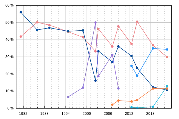 1981 • 1985 • 1989 • 1994 • 1998 • 2002 2003 • 2007 • 2008 • 2012 • 2014 • 2018 • 2022 |