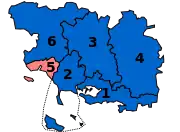| 4e | REG | Alfred Marie-Jeanne, sortant | 51,95 %[1] | 68,46 % | UMP | André Lesueur | 26,28 % | 31,54 % | ||