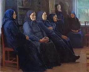 - Tradition vestimentaire : les membres du mouvement suivaient un strict code de conduite. Ils ne participaient pas aux bals, n'allaient pas au théâtre ou aux concerts, et ne portaient pas de vêtements colorés ni de coiffure élaborée. La deuxième nom finlandais du mouvement, körttiläisyys dériverait de ce port systématique de vêtements noirs avec un pli caractéristique dans le dos (en finlandais körtti , en suédois skört). Les membres du mouvement voulaient ainsi mettre l'accent sur leur liberté par rapport à la mode et leur adhésion à une vie simple. Cette tradition vestimentaire a reflué et est devenue une curiosité.