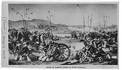 - L’on chargea les cinq petits canons de montagne avec des pierres et l’on effectua 92 tirs contre le palais. Selon certaines sources, la mitraille fit seulement deux blessés, selon d’autres, il y eut des tués. Certaines sources indiquent même que García de León y Pizarro fit fermer les portes et assassiner les négociateurs.