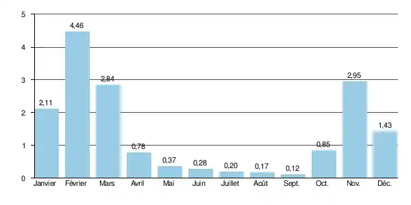 La lame d'eau écoulée dans le bassin atteint ainsi le chiffre satisfaisant dans cette région fort peu arrosée en moyenne, de 62 millimètres par an. Le débit spécifique atteint 1,97 litre par seconde et par km2 de bassin.
