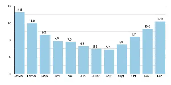 La lame d'eau écoulée dans cette partie - de loin la plus importante - du bassin versant de la rivière atteint ainsi le chiffre de 11 millimètres par an, ce qui peut être considéré comme très faible.