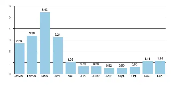 La lame d'eau écoulée dans le bassin atteint ainsi le chiffre très élevé de 1.182 millimètres par an. Quant au débit spécifique, il se monte à 37,5 litres par seconde et par kilomètre carré.
