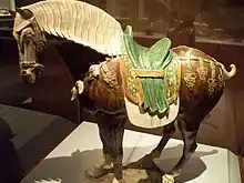 Au cours de la dynastie Han (206 av. J.-C. - 220 ap. J.-C.), des documents font état d'une expédition chinoise envoyée à Ferghana (aujourd'hui en Ouzbékistan ) pour y acheter des chevaux de qualité supérieure[13]. Ces chevaux ont été acquis pour un usage militaire et pour la reproduction[14].