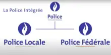 La structure de la nouvelle « police intégrée, structurée à deux niveaux », à la suite de la réforme de 2001 : police fédérale et police locale.