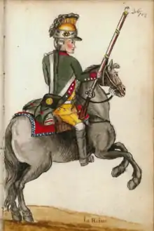 Les dragons constituent alors une arme spéciale propre fort appréciée, entraînée à combattre aussi bien à pied qu'à cheval, et n'appartenant ainsi ni à l'infanterie ni à la cavalerie. Les dragons sont armés d'un sabre droit, d'un fusil de dragon (plus court que celui de l'infanterie) avec baïonnette, d'un pistolet d'arçon et d'un outil de génie (pelle, hache, scie). Les sous-officiers et trompettes disposent d'un deuxième pistolet au lieu du fusil.