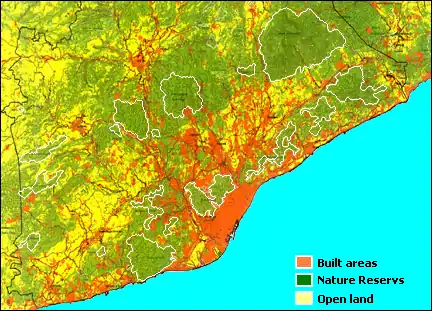 - Zones boisées: réserves naturelles et zones protégées telles que Collserola ou le Parc naturel du Garraf