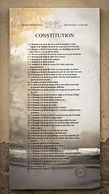 Élaborée par les poètes lituaniens Romas Lileikis (en) et Tomas Čepaitis, elle est traduite dans plus de 50 langues différentes et exposée sur un mur proche du café Uzupio picerija.