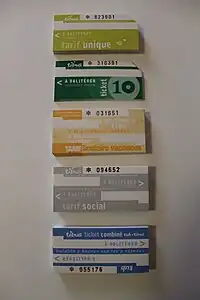 Des abonnements avec des cartes étaient également disponibles avec la « carte mensuelle » au tarif de 40 €, la « carte annuelle » proposée à partir de au prix de 400 € et la « carte scolaire » à 100 € avant 2012, 110 € jusqu'en 2014 puis 115 €.