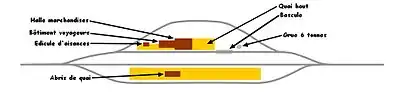 - Le bâtiments voyageurs (appelé également BV) est celui qui regroupe les services pour les voyageurs. C'est ce qui est appelé dans le langage courant « gare ».