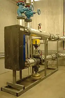 - les sous-stations : il s'agit des points de livraison de la chaleur. Elles matérialisent l'interface entre le réseau de chaleur et le bâtiment. En aval des sous-stations peuvent exister des réseaux de distribution dits « secondaires » ; ils font généralement partie des installations des bâtiments, et non des installations du réseau de chaleur.