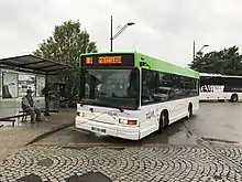 Un Heuliez GX 117 à la gare d’Ambérieu en 2017. | ||