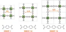 Les MOF sont nommés selon leur lieu de découverte suivi d’un numéro d’incrémentation, par exemple MIL-101 pour Matériaux Institut Lavoisier no 101, ou UiO-66[1].