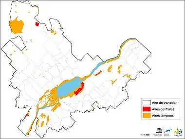 Le territoire de la RMBLSP comprend 11 aires centrales totalisant 5 139 ha.