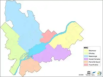 La Réserve mondiale de la Biosphère du lac Saint-Pierre (RMBLSP) s’étend sur une superficie de 7 394 km² et est répartie dans quatre régions administratives du Québec, soit la région de Lanaudière, de la Mauricie, du Centre-du-Québec et de la Montérégie. Dans celles-ci, on y retrouve un total de six municipalités régionales de comté (en incluant la Ville de Trois-Rivières), ce qui inclut 73 municipalités ainsi que deux communautés W8banakiak (Odanak et Wôlinak).