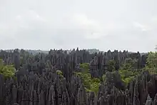 Un paysage karstique est un massif calcaire fortement déchiqueté formant un « tsingy » ou « forêt » d'éperons calcaires, paysage unique au monde. Tsingy vient du mot malgache qui signifie « aiguille »[4]. La réserve abrite d'autres manifestations karstiques telle la gorge de la rivière Manambolo (de 300 à 400 m de profondeur). La réserve de Bemaraha présente par ailleurs un paysage contrasté avec un relief vallonné et des pics élevés où des forêts primaires, des lacs et des mangroves servent d’habitat à diverses espèces d'oiseaux rares et de lémuriens.
