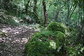 L'intérêt botanique du site est lié au boisement thermophile[1] (chênaie pubescente[4]) et aux pelouses calcicoles[4] relictuelles d’anciens pâturages (caprins[4] notamment) (0,63 ha) qui parsèment le boisement, ainsi qu'à la flore des falaises et entrées de grottes ou cavités.