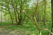 Les espèces forestières sont sélectionnées naturellement, puisque les inondations hivernales et la profondeur de la nappe phréatique entraînent l'engorgement des sols. Ainsi, dans les zones les plus humides de la forêt, seuls l'aulne glutineux, le merisier à grappes, le groseillier et le cassis peuvent pousser. Ailleurs, on trouve surtout le chêne pédonculé et le frêne commun, parfois l'orme[A 3]. L'aulne et le frêne forment ensemble l'aulneraie-frênaie, un habitat d’intérêt prioritaire au niveau européen[C 4].