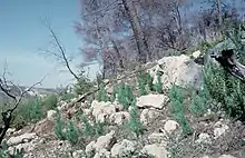 - la restauration de milieux ou de fonctions écosystémiques : par exemple, restauration en forêt méditerranéenne d'une zone forestière mixte, c'est-à-dire composée d'un mélange feuillus-résineux, la diversité des espèces rendant en effet la forêt plus résiliente[18] aux incendies, attaques de rongeurs, augmentations de températures…