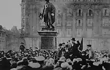 La foule se rassemble sur la place Kléber à Strasbourg pour assister aux démonstrations des politiciens et des révolutionnaires
