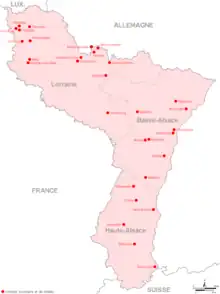 Carte des conseils d'ouvriers et de soldats proclamés en Alsace-Lorraine en novembre 1918.