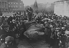 La statue équestre de l'empereur Guillaume Ier sur la Kaiserplatz est déboulonnée le .