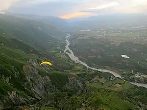 Parapente au-dessus du rio Chama près de Mérida.